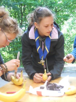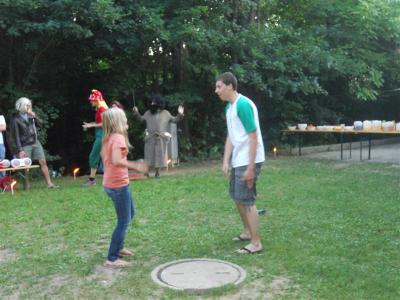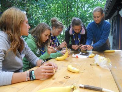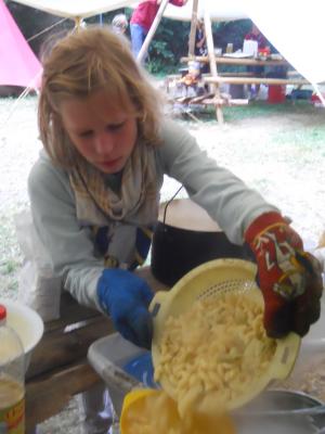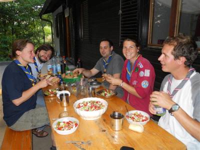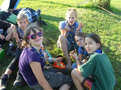 Dieser Beitrag zwingt mich gerade dazu, die letzten Stunden des Donnerstages auch in den Blog einfließen zu lassen. Nachdem jeder GuSp und CaEx Bauch nach dem Kochwettbewerb bis zum Rand vollgefüllt mit leckeren und mutigen Variationen war, mussten sich die Führer an ihr Klemmbrett setzten, um die verschiedenen Gerichte der Patrullen nach den Kriterien Geschmack, Kreativität und Aussehen zu beurteilen. Der strahlende Gewinner hieß Patrulleé und setzte sich aus fünf Caravelles zusammen. Mit stolzgeschwellter Brust konnte ich dies beim Abschlusslagerfeier verkünden.